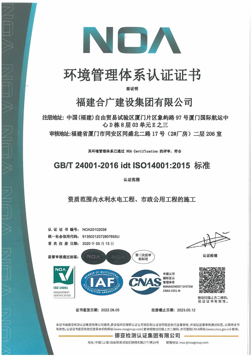 2022環(huán)境管理體系認證證書